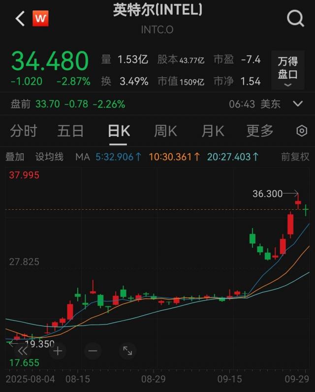 英特尔多次获得的现金注入提振了投资者情绪,公司股票自 8 月中旬以来已累计上涨逾 40%。今年以来,已累计涨逾 70%。