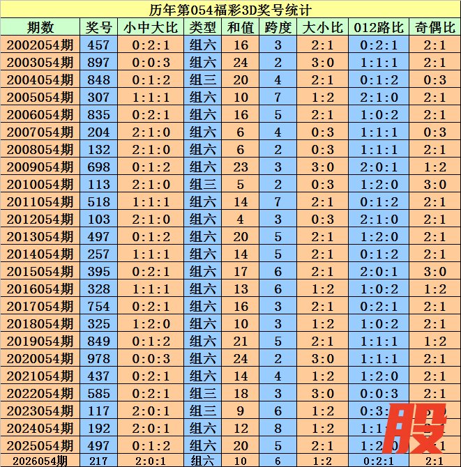 开奖回顾:福彩3D第2026054期奖号为:217。